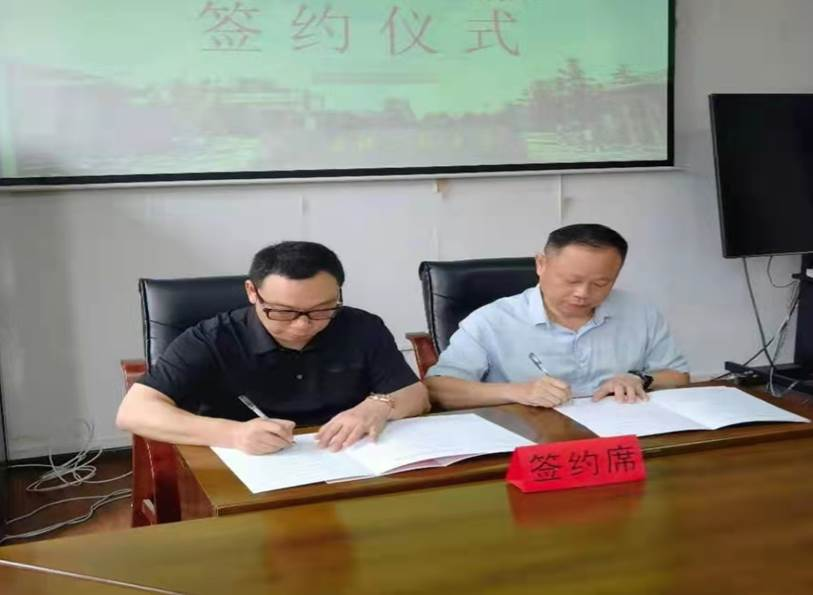 基金会秘书长邓新洲与唐球董事长签订捐赠协议书。