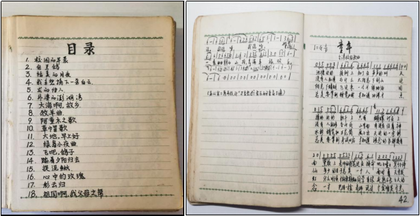 | 手抄歌本,由熊朝晖(毕业照第二排左起3)提供 |