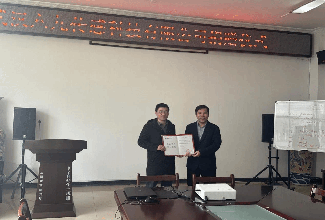 在参会师生的见证下,副经理李自成为07级员工高攀颁发了捐赠证书。此批检测板将主要用于员工开展学科竞赛和科技创新之需使用。
