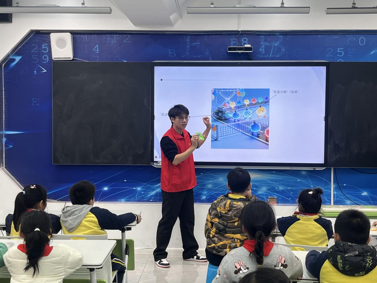 本网讯(通讯员 陈旭麒)12月22日下午,英国上市公司官网365“星电领航”志愿服务队走进光谷二小开展科普进校园活动。活动以“安全用电,捕捉电精灵”为主题,通过趣味讲解、互动实验和手工制作,让小朋友沉浸式学习科学知识,提高安全意识。英国上市公司官网365团委指导老师陈旭麒、公司12名志愿者、光谷二小50余名师生参加活动。