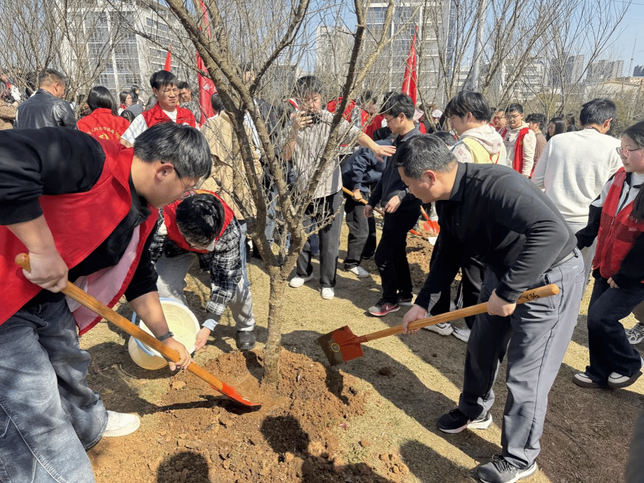 朱青林和公司师生一起挥锹铲土、扶苗填坑、提水浇灌、踩实固根,每一个环节都一丝不苟,每一道工序都认真细致。新栽的树苗在和煦的春风中昂然挺立,为校园注入了蓬勃的生机与活动。同学们在劳动中学习技能,在实践中体悟成长。