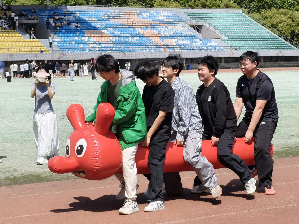 本次运动会以班级为单位组队参赛,设有“疯狂毛毛虫”、“一圈到底”、“旋风跑”、“花样投篮”、“十人十一足”和“踩气球”六个趣味项目。各参赛队伍在负责人有序组织下,凝心聚力、默契配合,顺利完成各项竞赛。同学们在比拼中舒展身心、乐享运动,在协作中拉近彼此距离,凝聚集体温情。