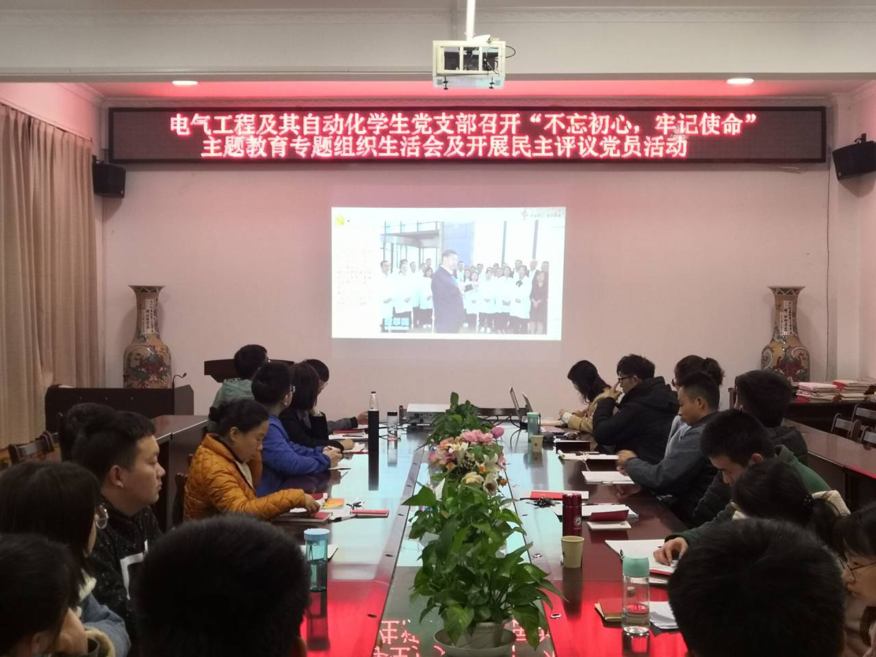 电气工程及其自动化员工党支部召开“不忘初心,牢记使命”主题教育专题组织生活会和开展民主评议党员活动