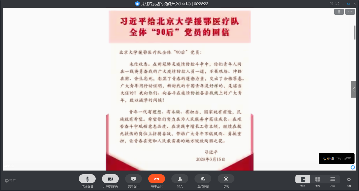 本次主题党日活动虽开在“云端”,但通过学习,交流,进一步加深了员工党员对疫情防控知识的认识理解,助力后期复学返校工作。同时也让广老员工党员意识到责任担当,纷纷表示作为“90后”、“00后”员工党员应当努力成为堪当时代大任的中国青年。