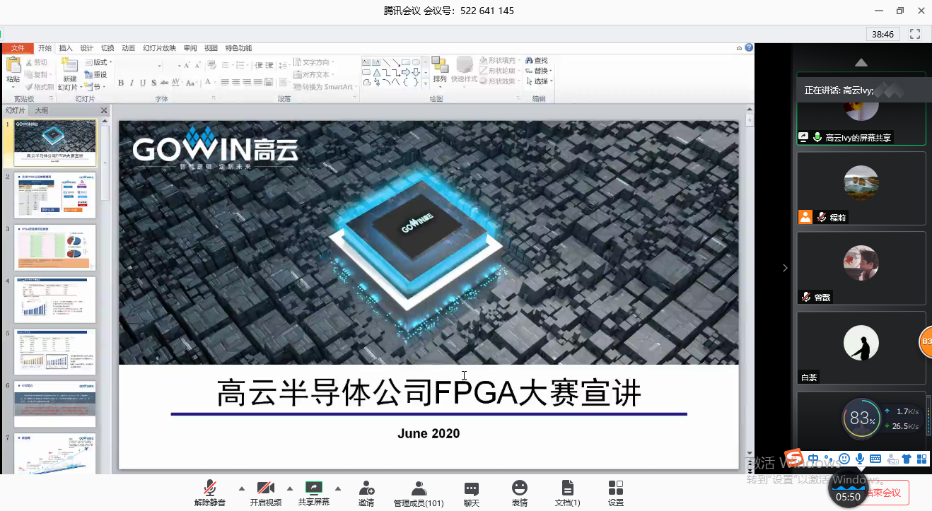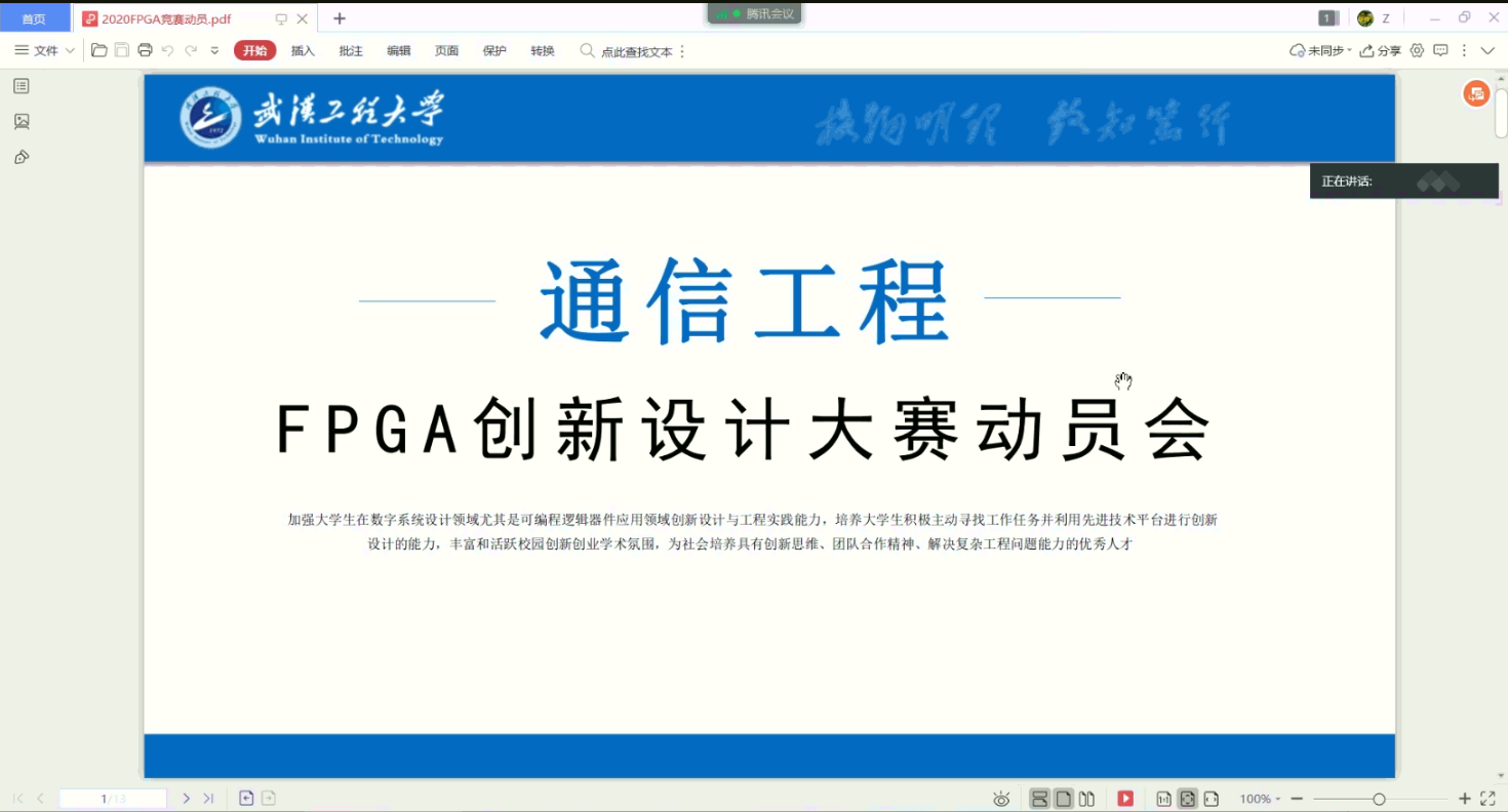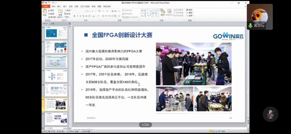 本网讯(通讯员 元海文2020年 6月4日晚7点,通信工程系全体师生采用腾讯在线会议的方式顺利召开了第四届全国老员工FPGA创新设计大赛动员大会,并成功邀请到大赛赞助商——广东高云半导体科技股份有限公司专家代表参与互动指导。