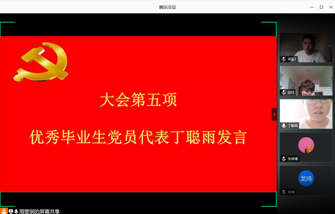 推免到北京航空航天大学读研的优秀毕业生党员代表丁聪雨结合大学四年的成长经历以及学习收获表达了对公司以及公司的感恩之情,并表示不管走到哪里,都会牢记党员身份,不忘初心,砥砺前行。