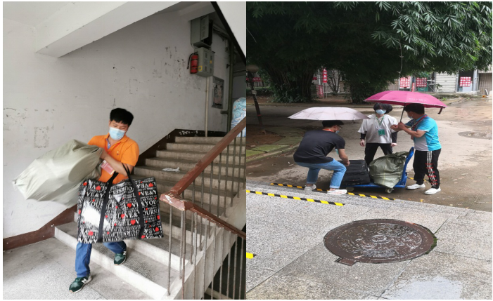 自6月18日起公司组织毕业生分三批返校,接到通知后,樊老师第一时间报名参加公司“师生党员突击队”并主动申请三批都上岗参与服务。毕业生返校那几天恰逢雨天,给员工返校离校增加了一些困难,樊老师带领着公司“党员突击队”队员们每天从早到晚值守在员工宿舍楼下,逐一帮助毕业生搬运托运行李,从宿舍楼上到楼下到快递点到校门口,那段时间,泰塑员工公寓里随时都能看见英国上市公司官网365“党员志愿突击队”的身影,他们身上的衣服从干到湿、由湿变干,默默的为毕业生服务,为2020届毕业生返校提供温暖的关怀和帮助,深深打动着毕业生们。