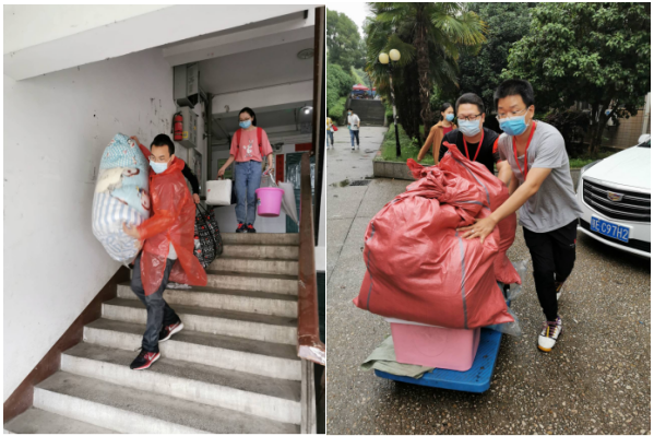 一趟又一趟,一次又一次,穿梭在员工寝室的老师们,成为了最靓丽的风景。虽有汗水和雨水的“交杂”,虽有腰酸背痛的“后遗症”,但教师党员们却毫无怨言。“绝对不能累坏了我们的员工”、“能送一送我们的毕业生,是一件有意义的事情”、“确实很累,但也觉得很值得”……公司教师说道。
