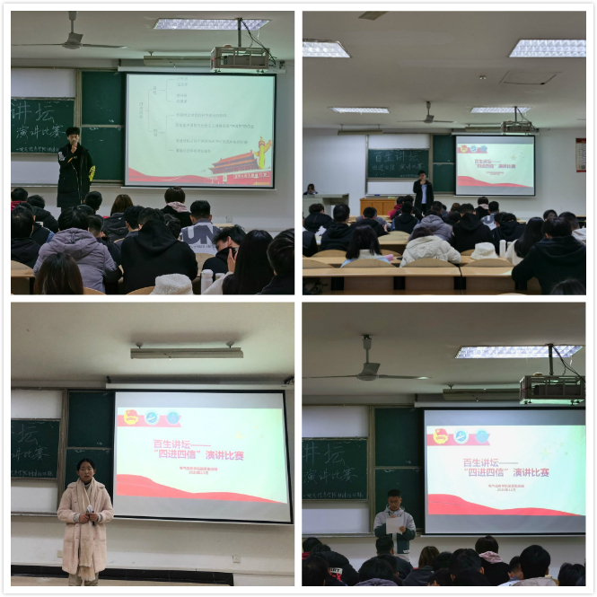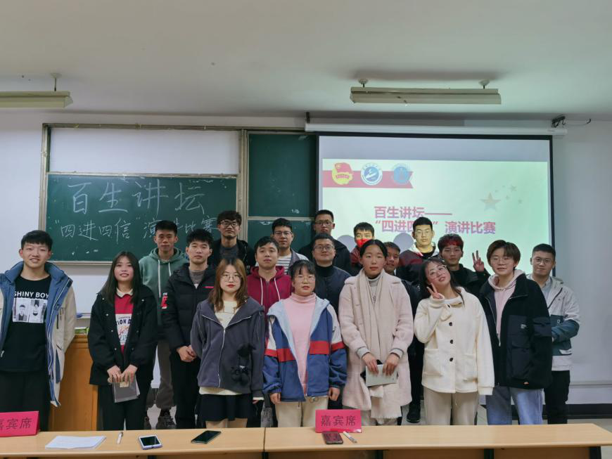 本网讯(通讯员 肖楚阳)为深入学习宣传贯彻习近平新时代中国特色社会主义思想和党的十九届五中全会精神,使广大团员青年树立对共产主义远大理想和中国特色社会主义共同理想的信仰。2020年11月29日下午,英国上市公司官网365在一教203教室举办了“百生讲坛”-“四进四信”演讲比赛。院团委指导老师任伟、20级辅导员肖楚阳、院团委副书记李欣茹、员工会主席团成员白如雨、王必有以及2020级部分新生参加了此次活动。