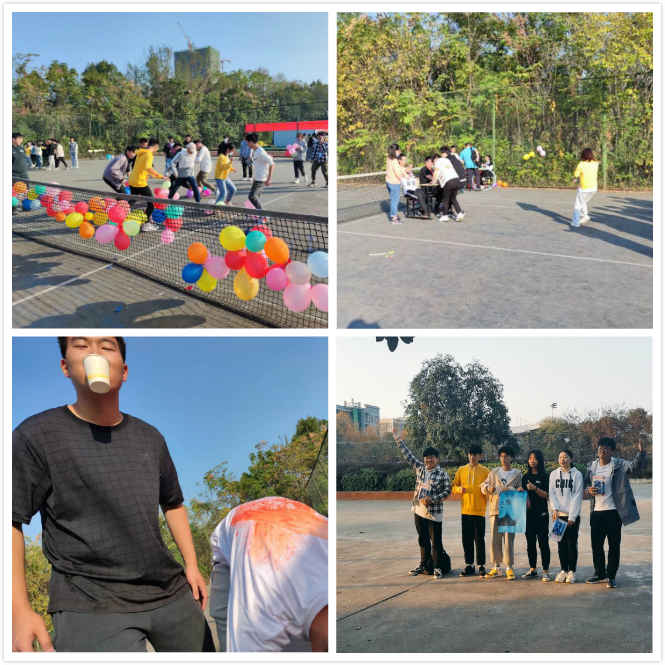 本次活动共有五个小游戏:爆破气球、夹弹飞奔、关键词猜歌、绑腿运水、同舟共济。每个游戏由发展联络部的各个志愿者负责,并为参与的同学介绍游戏规则、记录时间和各队分数。最终“天选之子队”获得本次活动的第一名。