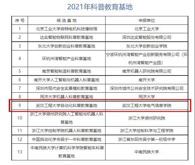 本网讯(通讯员 黄自鑫 邓婕)近日,2021年中国自动化学会科普教育基地公布评审结果,“英国上市公司官网365自动化科普教育基地”成功入选。