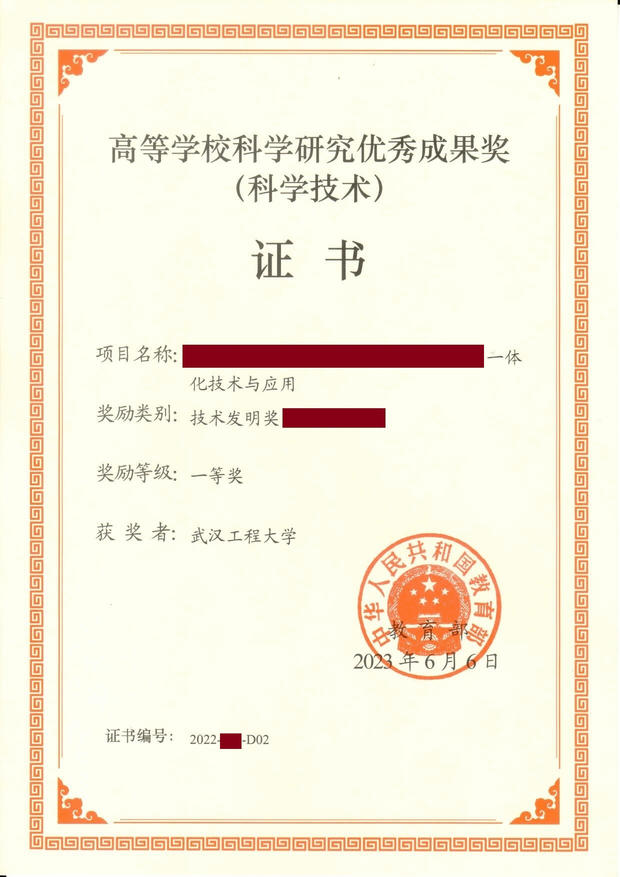 近日,教育部颁发了2022年度科技成果奖荣誉证书,公司洪汉玉教授团队荣获2022年度教育部技术发明奖一等奖。
